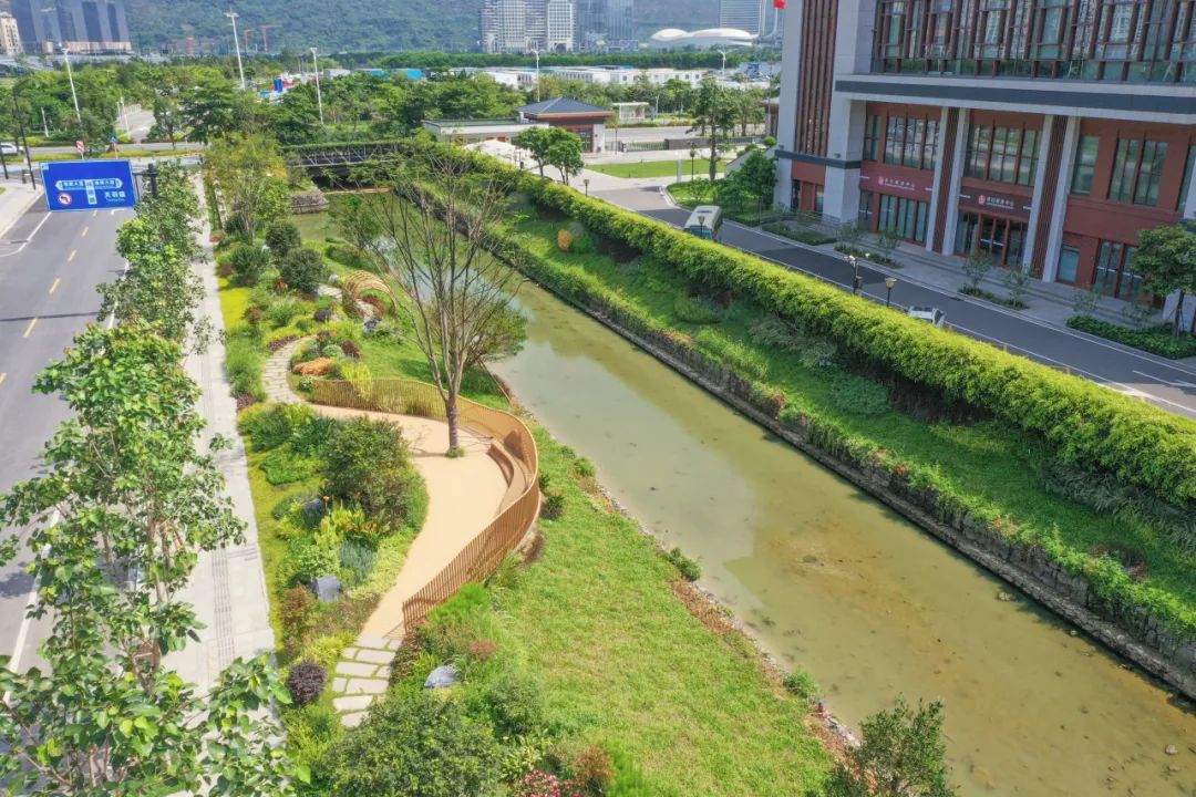 除了開展花境補苗、草皮鋪種、苗木修剪、雜草清理等日常管養(yǎng)工作外,大橫琴城資著眼邊角地、零碎地、閑置地,以見縫插綠的方式因地制宜打造高品質綠色生活空間,如將首都師范大學橫琴伯牙幼兒園門前原黃土裸露的空地打造成空間通透、綠意蔥蘢的微綠地,將合作區(qū)市民中心周邊排洪渠兩側的荒地打造成集自然、生態(tài)、休閑于一體的濱水景觀帶,切實增強了居民的“綠色幸福感”。