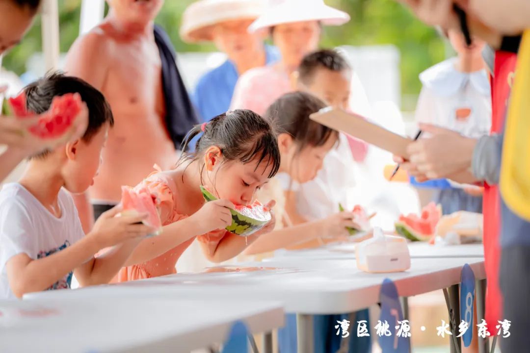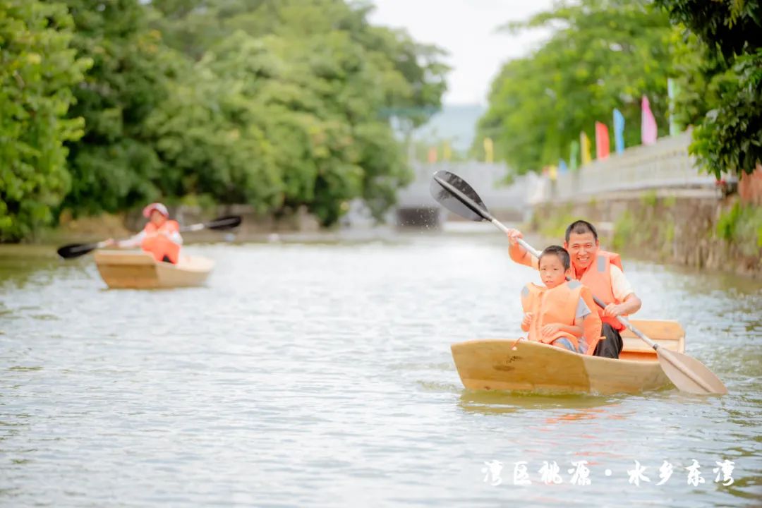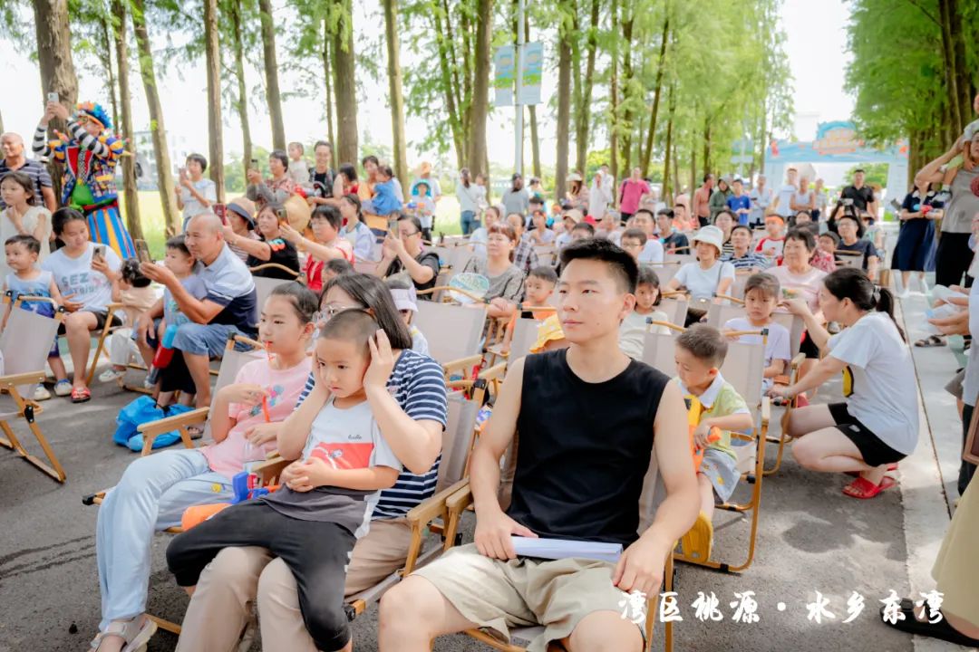 隨后,現(xiàn)場的水車伴著歡笑聲噴灑出陣陣水霧,也標(biāo)志著此次“東灣夏日清涼大作戰(zhàn)”活動正式開始。在接下來的兩天時間里,活動將充分結(jié)合東灣村民俗文化和稻田、河涌等良好的生態(tài)環(huán)境基底,通過農(nóng)艇競渡、趣味戲水、非遺剪影、東灣美食、清涼集市等元素,將傳統(tǒng)鄉(xiāng)村元素與現(xiàn)代競技、活動相融合,打造一系列清涼刺激的互動體驗。活動形式豐富多樣,既有團(tuán)隊合作的競技項目,也有輕松愉快的趣味游戲,還有特色清涼集市供游客休閑購物,可謂是“面面俱到”。