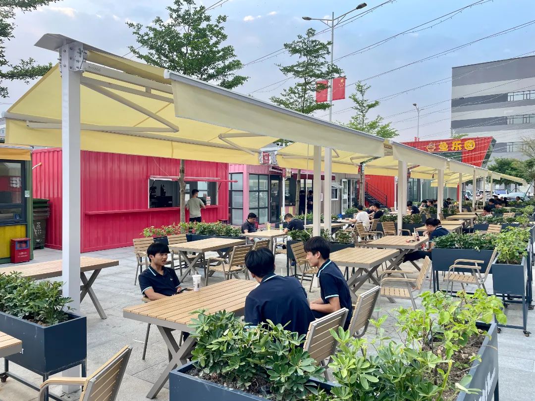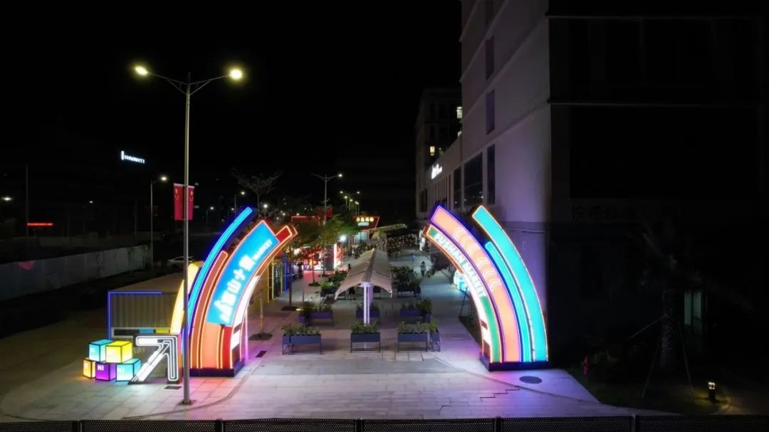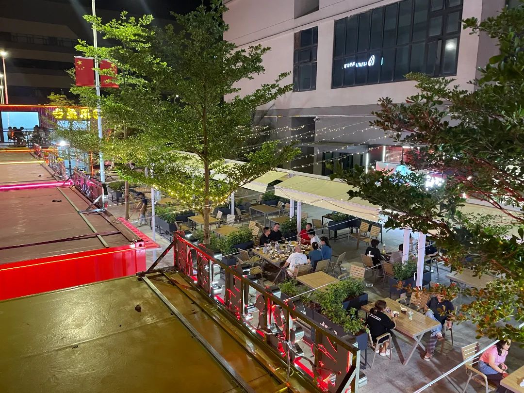 富山街市位于斗門大橫琴5.0產業(yè)新空間,坐落于B區(qū)公服中心西側,占地面積1200㎡,有11個攤位,多個五顏六色的集裝箱錯落有致,儼然是工廠風的商務區(qū)—“廠BD”。