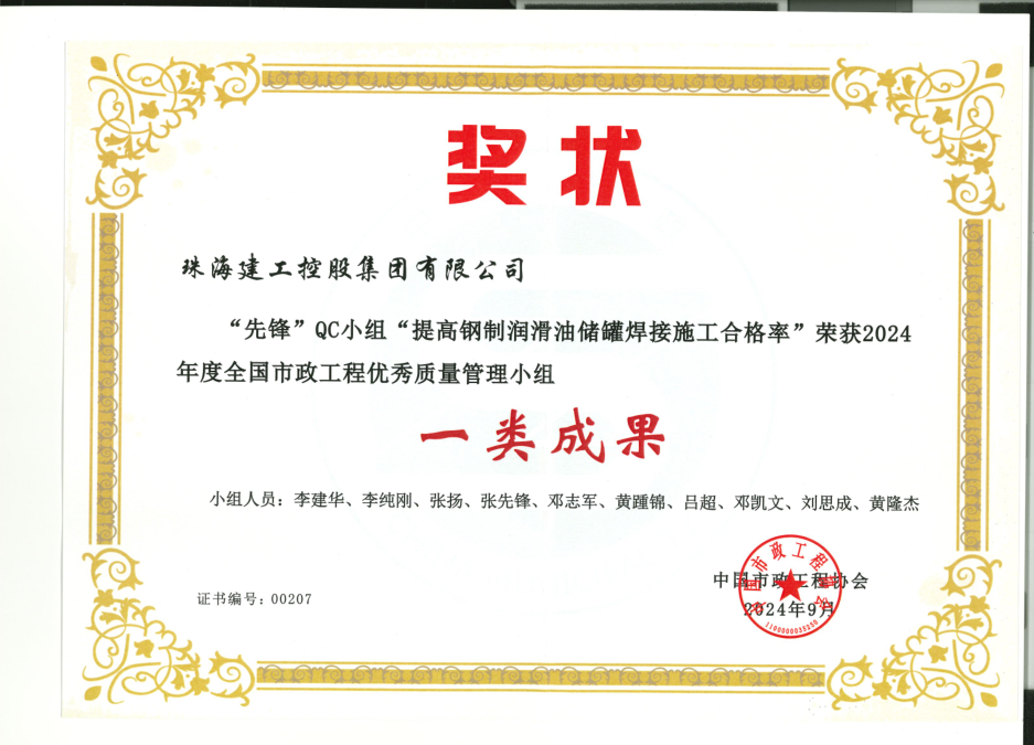 在本次QC小組活動中,珠海建工集團開展了一系列業(yè)務(wù)培訓,組織技術(shù)條線輸出了QC成果共33個課題,其中《提高鋼制潤滑油儲罐焊接施工合格率》獲得國家級一類成果;其余成果中15個課題榮獲省級優(yōu)秀QC成果:2個課題榮獲省級一類成果;6個課題榮獲省級二類成果;7個課題榮獲省級三類成果;技術(shù)研發(fā)中心臨時負責人李建華榮獲優(yōu)秀發(fā)布者,本次QC小組活動的優(yōu)異成績,實現(xiàn)了公司QC成果獎在國家級獎項、省級獎項方面零的突破,為公司工程項目評優(yōu)奠定了基礎(chǔ)。